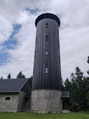 Wieża widokowa na Borówkowej Wieża widokowaPierwsza wieża stanęła w tym miejscu w 1870 roku. Obecna wieża powstaÅ‚a w 2006 roku. Na szczycie, w latach 80, odbywaÅ‚y siÄ™ konspiracyjne spotkania czeskiej i polskiej opozycji. |