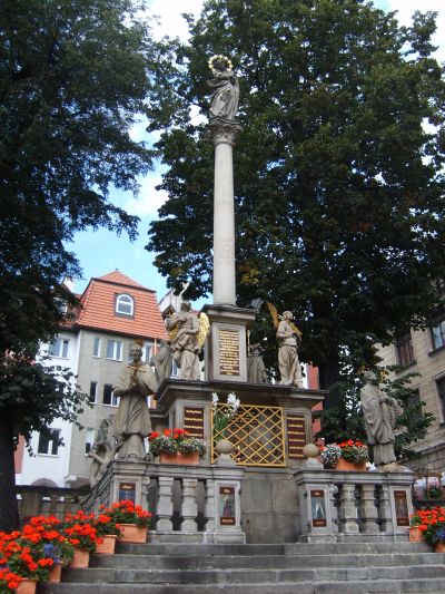 Kolumna Maryjna Obiekt sakralny, Pomnik, RzeźbaWotywna kolumna maryjna, wzniesiona w 1680 roku, upamiętniająca dwa tragiczne wydarzenia z dziejów Kłodzka - ogromny pożar miasta w 1676 roku oraz zarazę w 1680 roku.Kolumna ufundowana została wspólnym nakładem kłodzkich jezuitów, proboszc |