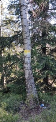 Madonna ze szlaku Obiekt sakralnyIdąc z Ptasiej Kopy niebieskim szlakiem, dochodząc już do szczytu Lisiego Kamienia, po prawej stronie możemy ujrzeć na drzewie ikonę z napisem "Madonna ze szlaku", a tuż nad nią niedawno usytuowaną (w 2020 roku) niewielką kapliczkę. W nasz |