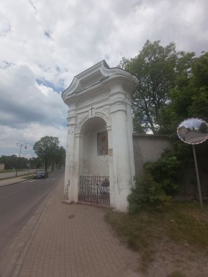 Stacja 20 - Pomoc Szymona z Cyrenajki Architektura, Obiekt sakralnyPomoc Szymona z Cyrenajki to jedna ze stacji Kalwarii Krzeszowskiej. Mieści się w małej murowanej kapliczce przy drodze (kiedyś gruntowej, obecnie pokrytej masą bitumiczną) będącej przedłużeniem ul. Opata Bernarda Rosy. We wnęce wisi obraz |