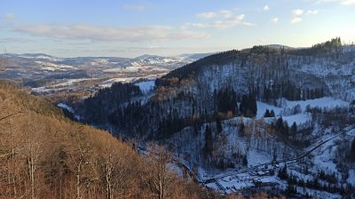 Punkt widokowy Punkt widokowyPunkt widokowy na górze Zamkowej. Widok na Borową, Kozioł i Wołowiec. |