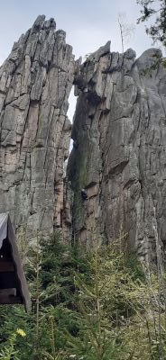 Urwista Forma Skalna, Punkt widokowyFormacja skalna o wysokości do kilkunastu metrów w pobliżu Zamku Bolczów. Na szczycie prowizoryczny punkt widokowy z widokami m.in. na Góry Sokole oraz szczyty Karkonoszy. |