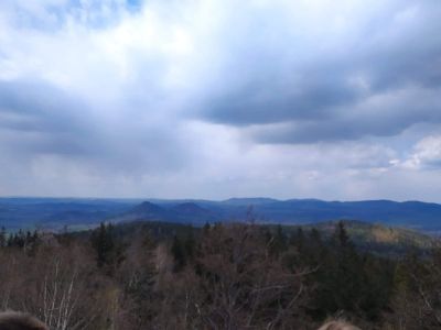 Husyckie Skały Forma Skalna, Punkt widokowyHusyckie Skały (Kutschenstein) (545 m n.p.m.) - to okazałe granitowe urwisko z 20 metrowymi skalnymi ścianami i punkt widokowy. |