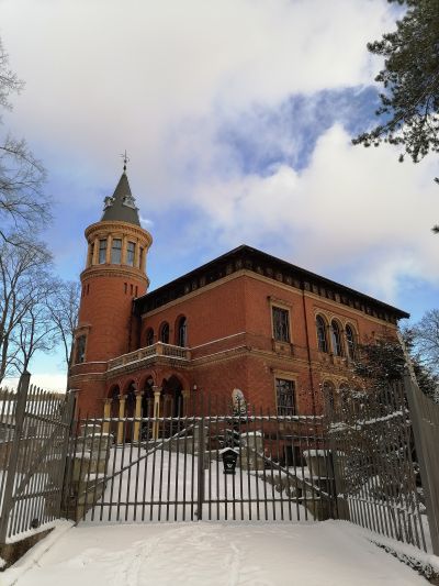 Pałac fabrykanta Architektura, PałacPałacyk (zameczek) powstały w 1894 roku w ścisłym centrum miasta. Zbudowany został w rozległym ogrodzie - parku, obecnie znacznie zmienionym, służącym jako ogródek jordanowski. Budynek piętrowy z narożną okrągłą wieżą i kolumnowym p |