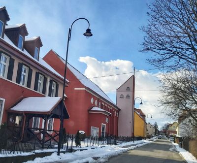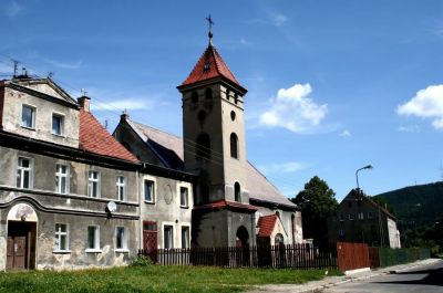 Dawny kościół ewangelicki Architektura, Obiekt sakralny, Obiekt uzyteczności publicznejKościół powstał w 1926 roku w wyniku przebudowy restauracji na dom modlitwy. Gruntowna rozbudowa w 1934 i wtedy poświęcenie świątyni. |