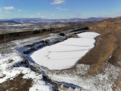 Kamieniołom Kamyki Punkt widokowy, Zbiornik wodnyKamieniołom melafiru którego działalność zakończyła się w latach 70 tych. Obecnie kamieniołom jest zalany. Przerwane cieki wodne tworzą tutaj małe wodospady które zimą zamarzają tworząc lodospady na których trenują wspinacze. |