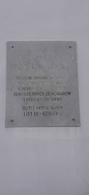 Tablica pamiątkowa - H. Sienkiewicza 27Tablica pamiątkowa na budynku H. Sienkiewicza 27 (dawny "Dworek Marii") w Szczawnie-Zdroju. Odsłonięta w 1965 roku. Informuje o tym, że w tym budynku przebywał na kuracji w 1847 roku Wissarion Bieliński, rosyjski filozof, myśliciel. Podczas te |