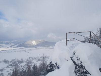 Punkt widokowy przed schroniskiemPunkt widokowy obok schroniska Orzeł z jedną z ładniejszych panoram w Sudetach w kierunku Nowej Rudy, Sokolca i Górnej Rzeczki. Obok miejsce do wypoczynku. |