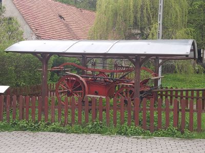 Wóz strażackiWóz strażacki pochodzi z 1839 roku, do początku XX wieku służył strażakom z Sokołowska. Po II wojnie światowej stał w szopach i garażach, dzięki czemu zachował się w stosunkowo niezłej formie. |