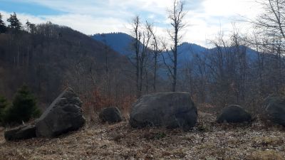 RogaczSzczyt w Górach Stołowych 708 m. npm niezbyt wyniesiony na otoczenie. W okolicy formacje skalne tzw Skalnych Grzybów |
