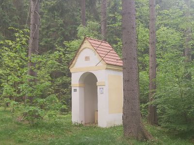 Stacje 2,3 i 4 Kalwarii KrzeszowskiejKapliczka, w której znajdują się trzy stacje Drogi Krzyżowej |