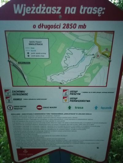 Single-track JedlinkaGórny wjazd na Single-track położony na rozległym zboczu wzgórza nad kompleksem hotelowym w Jedlince.Dlugosc trasy to niespełna 3km a dolny wjazd znajduje się przy hotelu Jedlinka |