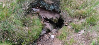 Szczelina wiatrowa małaSzczeliny wiatrowe to sieć spękań które powstały w masywie Lesistej Wielkiej. Latem w szczelinach wdychane jest powietrze a ziemą wydychane dzięki czemu śnieg zalegający wokół otworu topi się. Kiedy Lesista Wielka nie była tak mocno zale |