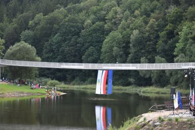 Kładka wstęgowa na jeziorze BystrzyckimNajdłuższa w Polsce kładka o konstrukcji wstęgowej i jedyna taka konstrukcja wieloprzęsłowa. |