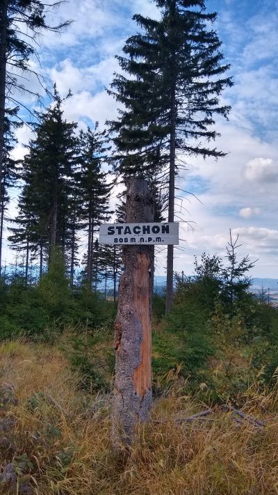 StachońSzczyt w Masywie Lesistej i Dzikowca o wysokości 808 m n.p.m. |