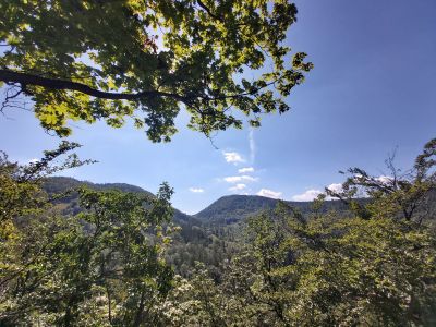 Punkt widokowyPunkt widokowy na Choinie (450 m n.p.m.), przy Zamku Grodno. Widok na dolinę bystrzycy. |